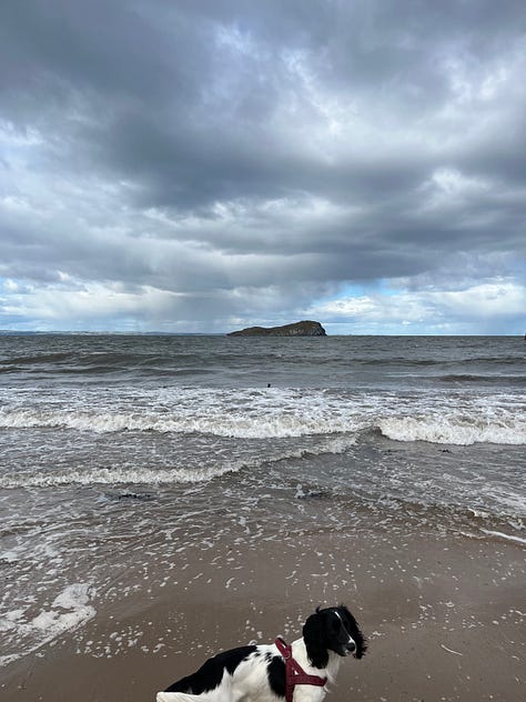 O, hi, reader. September was a fragrant whirlwind. The pouring rain swooshed clouds away, warmer days ahead before porcini the size of my actual fist poked their heads around the woods, and plenty of other caps pointed the tips of their nose between open trunks and broken branches. Crackling woods, crocking trees – September lingered inside my bones. In the city, the pavements were crowded with emptied cardboard boxes as Glasgow waved for novelty if not quite studious yet. Freshers drummed in and students walked down Byres Road with tiny cacti in pots and pans in their hands. ‘Who said I needed toes, papa?’ I heard a boy asking his dad, in French, in passing while cycling through the Kelvingrove Park, my fingers bloodless. The air whipping! The spiders webbed across the bushes next to the canal if not at the corner of my ceiling, behind the fridge and on the side of windows, parachuted anywhere and nowhere, still webbing and wet with the rain that didn’t fall but crawled back upstream – dew before a new day. The equinox happened on a Monday, capitalism ever a cheeky teaser in a world where most us workers and carers don’t know of a 9-to-5 week. Autumn is soulful if not foggy – tidal, flying, stretching as the gannets gear up to leave Bass Rock in the Fife for warmer seas. Eiders, shags, cormorants settle in, prompting earthlings to slow down as the land needs resting, frosting, so one builds a nest and knits a few, resourceful blankets of their own—and the year spins onwards. And everyone is talking louder than usual as necks withdraw beneath scarves, ears are tucked underneath hats. Shush, listen, a crunch as the first leaves fall, red.